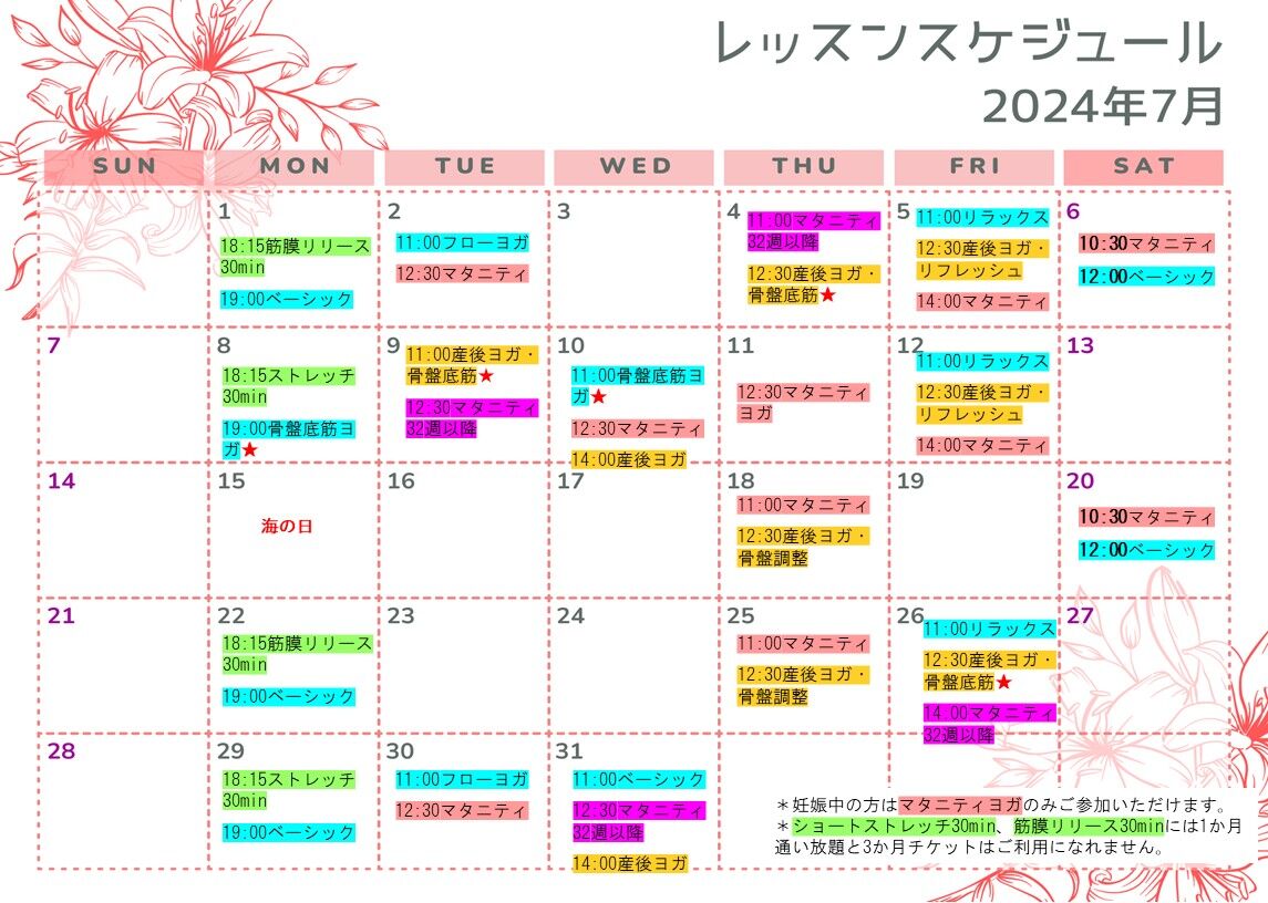 2024年06月29日 7月のレッスンスケジュール 7月のレッスンスケジュールをお知らせします。ヨガスタジオmymeでは、7月から「骨盤底筋」を鍛えるためのヨガがスタートします。いま「骨盤底筋」が気になっている方へオススメです。1歳半までのお子様連れOKのクラス、お仕事帰りに19:00スタートのクラスもあります。お気軽にお問合せください。 タグ :#骨盤底筋#女性インストラクター#女性専用ヨガ#マタニティヨガ#産後#茅場町駅前#ヨガ茅場町#茅場町#中央区#女性専用